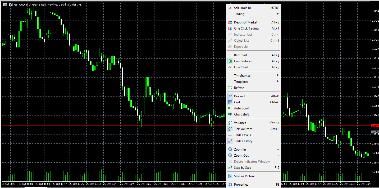 1) チャート上で右クリック